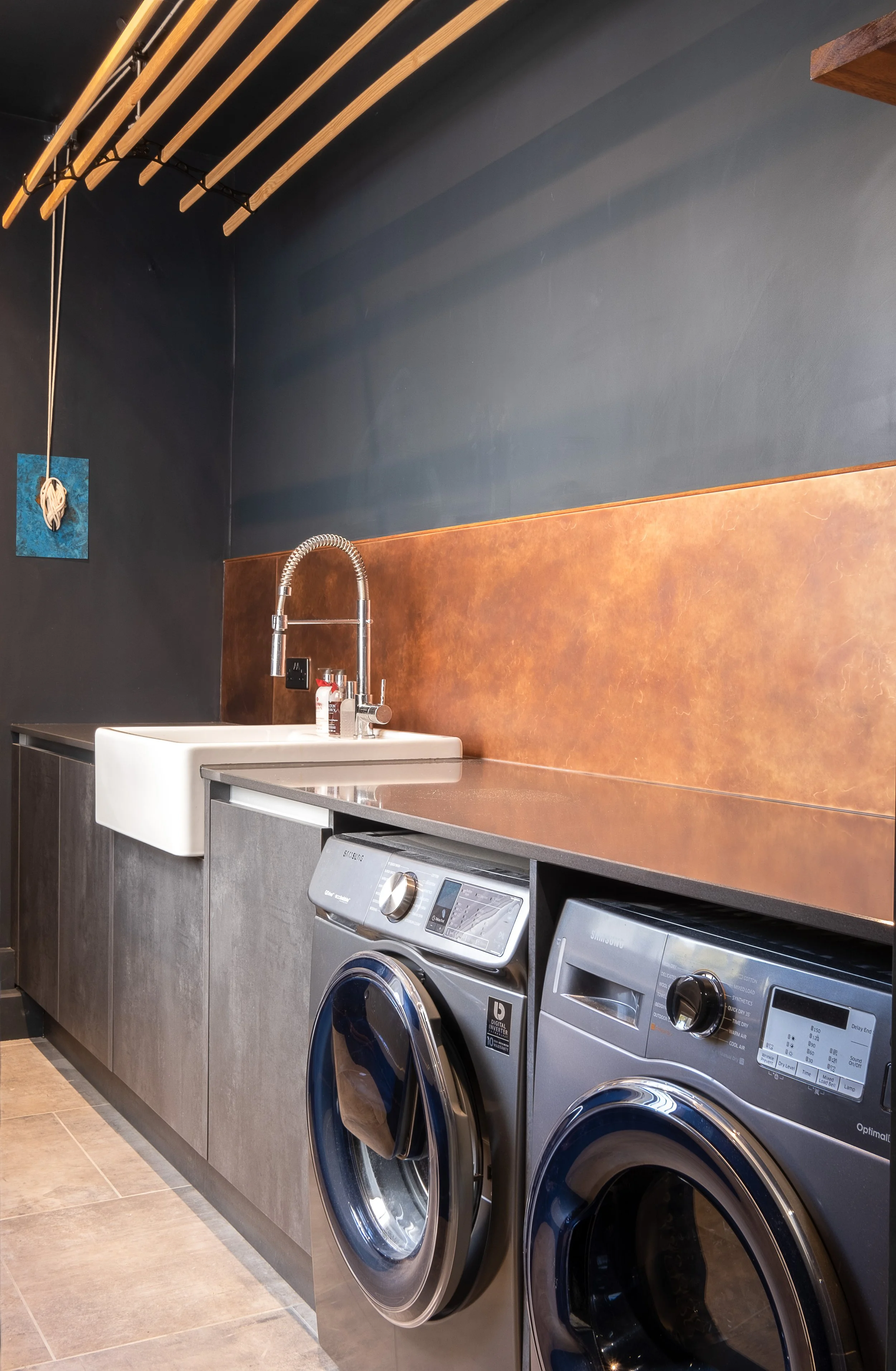Our bespoke utility rooms are personalised to suit your lifestyle and accommodate your storage needs. The engine room of the house requires thoughtful planning to house all the essentials. Utilities typically house a washing machine, tumble dryer, secondary fridge or freezer and tall storage for ironing boards and cleaning essentials. Often doubling up as a boot room, utilities can also provide additional storage for shoes, bags and coats.